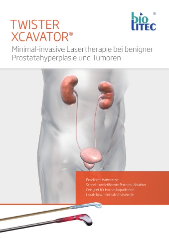 TWISTER XCAVATOR ® Minimal-invasive Lasertherapie bei benigner Prostatahyperplasie und Tumoren Exzellente Hämostase Schnelle und eiziente Prostata-Ablation Geeignet für Hochrisikopatienten Lokale bzw. minimale Anästhesie