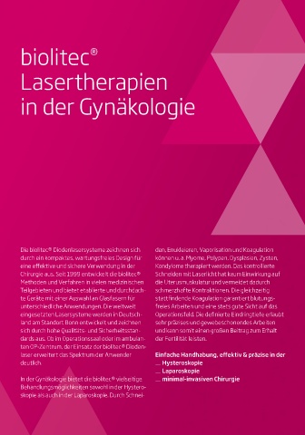 In der Gynäkologie bietet die biolitec® vielseitige minimal-invasiven Chirurgie